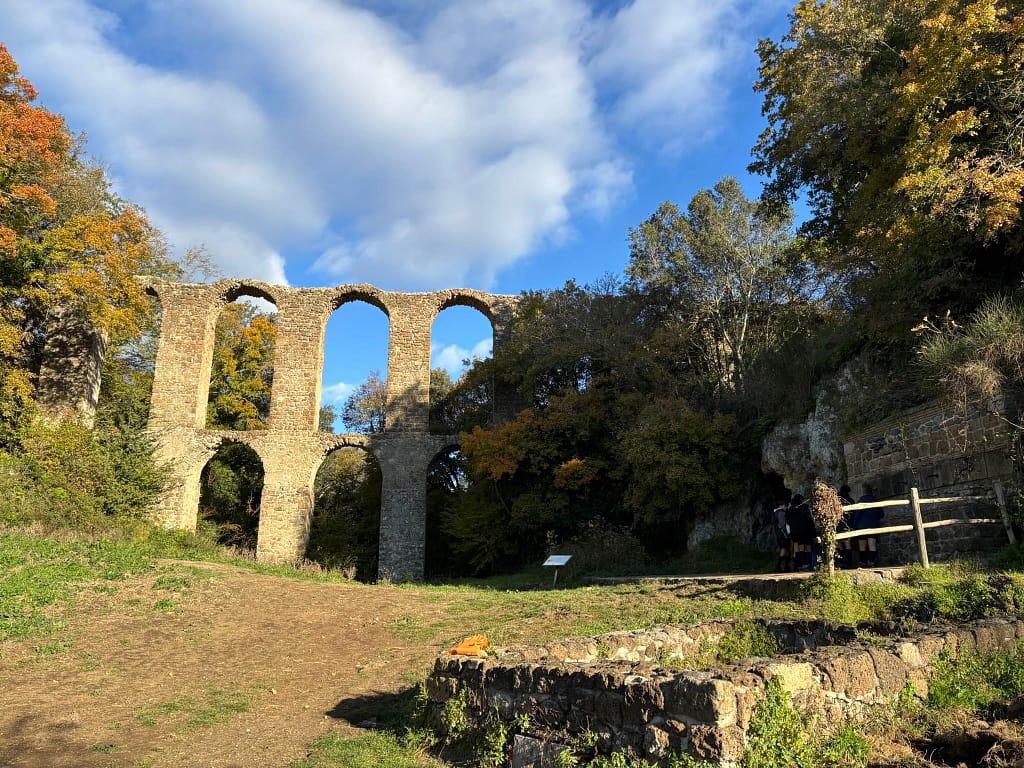 La mattina successiva ci siamo svegliati di buon’ora e recuperati tutti i materiali e chiusi gli zaini ci siamo preparati per la nostra Route tra le antiche rovine di Canale Monterano. Dopo aver imboccato il sentiero e percorso un pò di kilometri ci siamo imbattuti nei resti dell’antico acquedotto e davanti al maestoso convento rinascimentale di San Bonaventura che ci ha fatto da sfondo per un’attività di riflessione sul tempo